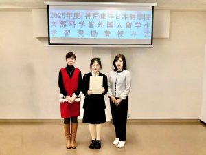 One student from our school has been selected as a recipient of the MEXT Honors Scholarship for Privately Financed International Students, provided by the Ministry of Education, Culture, Sports, Science and Technology (MEXT), and an award ceremony was held.