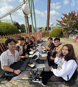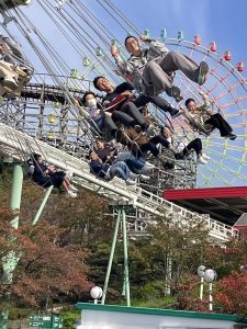 ひらかたパークでは、絶叫系アトラクションからゆったり楽しめる乗り物まで幅広く揃っており、学生たちはそれぞれのグループでアトラクションを満喫しました。園内で写真を撮り合ったり、軽食を囲んで会話を楽しんだりと、思い思いに遠足を楽しむ姿が見られました。