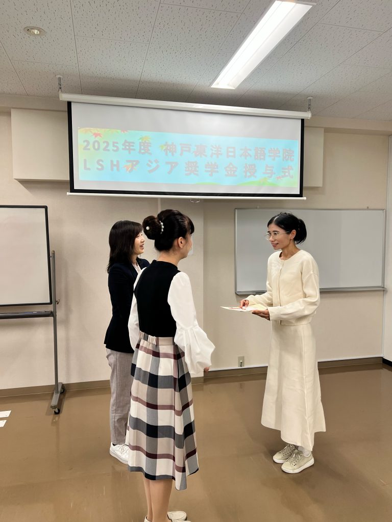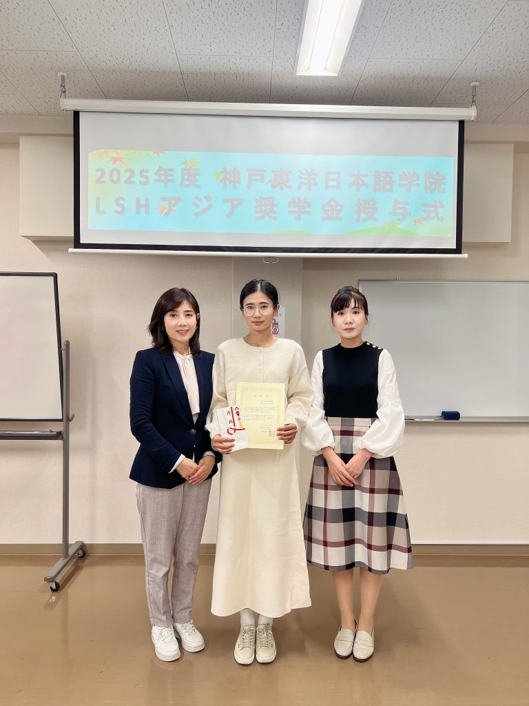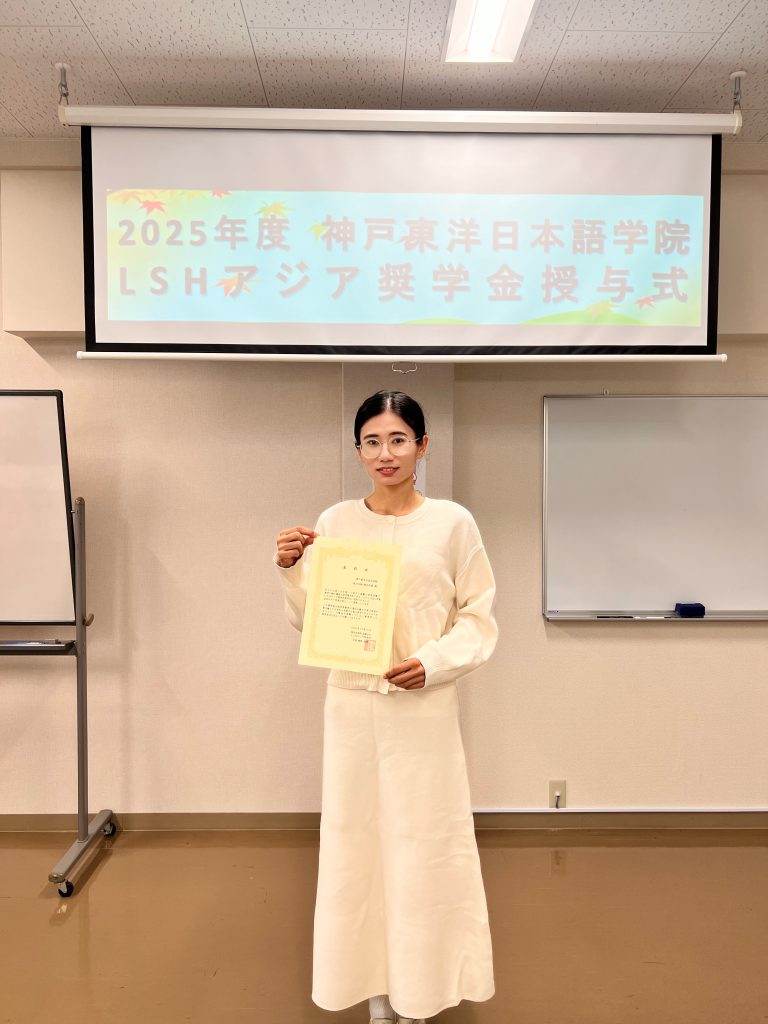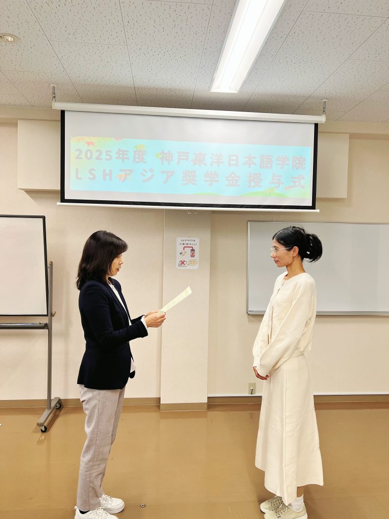 2025年度 LSHアジア奨学金授与式が行われ、本校より1名の学生が奨学生として選ばれました。